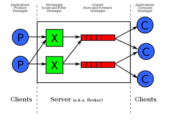 AMQP 里主要要说两个组件:Exchange 和 Queue(在 AMQP 1.0 里还会有变动),如下图所示,绿色的 X 就是 Exchange ,红色的是 Queue ,这两者都在 Server 端,又称作 Broker ,这部分是 RabbitMQ 实现的,而蓝色的则是客户端,通常有 Producer 和 Consumer 两种类型。Rabbit科技有限公司开发了RabbitMQ,并提供对其的支持。起初,Rabbit科技是LSHIFT和CohesiveFT在2007年成立的合资企业,2010年4月被VMware旗下的SpringSource收购。2013年5月RabbitMQ成为GoPivotal的一部分。