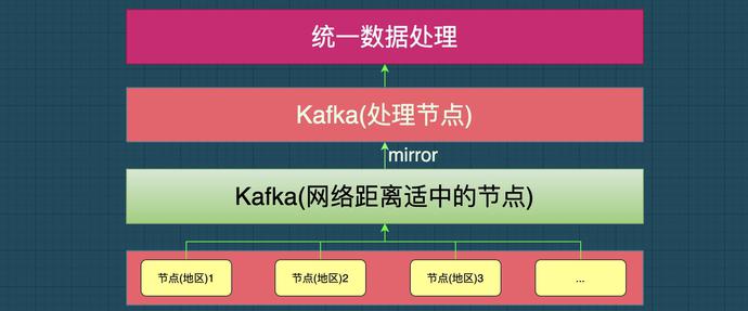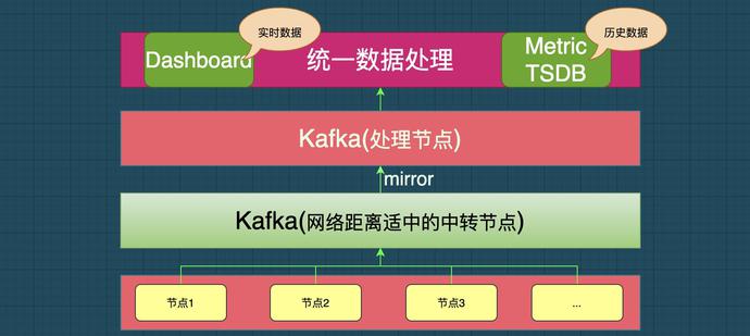 为了减少过多的Kafka部署增加运维的复杂性我们其他站点的监控数据统一上报到一个网络距离上处在相对中间的kafka集群,然后在通过mirror的方式将监控数据同步到管控节点进行集中的消费处理,整体看监控数据从最远端的站点传回到集中管控节点通常控制在1s内整体可以接受,其实最主要的是监控数据写到Kafka避免监控数据因为网络原因导致丢失。