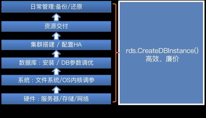 上述功能其实都不涉及传统自建时代围绕基础设施做的一系列的建设工作,功能本身更多是聚焦业务功能本身,因此开发过程中相对还是轻量的。如果自建则要考虑的问题非常多从硬件,系统,数据库,HA等等都是非常复杂的,过去DBA在这块积累的大量的经验每个资深DBA可能在这块都有专属于自己的黑科技,这也是DBA过去比较有价值跟难以替代的地方,但是随着DB的上云成为趋势传统的做法正在成为历史也逐渐的被新入行的DBA所淡忘,云对基础设施的封装是时代的进步。