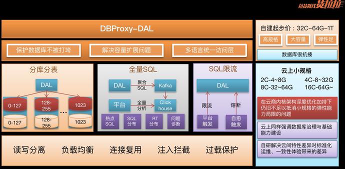 系统会实时感知到数据库负载情况,结合数据库中间件的能力快速作出决策进行限流或者SQL查杀,同时基于云的弹性能力进行自动扩容云上都有类似的ModifyDBInstanceSpec接口,比如检测到空间不足则立即扩容,因此我们可以将实例空间维持在一个很高的使用水位尽量成本合理化。