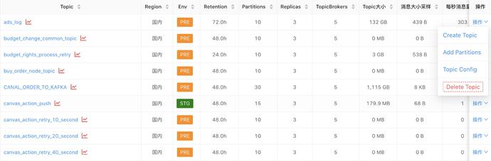 除了对topic的常规操作封装到平台外,还通过对topic元数据信息落库我们可以在全局的角度分析一些问题比如当前那些topic是热点topic,那些topic msg body比较大(可能需要DBA找下业务方确认合理性,很多数据来源是canal->mysql->kafka研发为了简单可能会将全字段写入kafka),那些topic体量比较大等等。