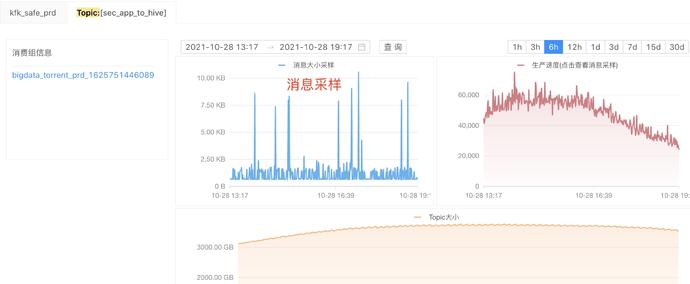 通过对每个topic的消息大小采样,可以知道消息体大小分布情况及通过采样消息分析消息体大小突变的原因,方便作出优化处理。
