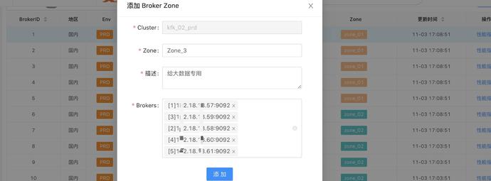 我们对broker做了zone分组方便实现后续的资源隔离。
