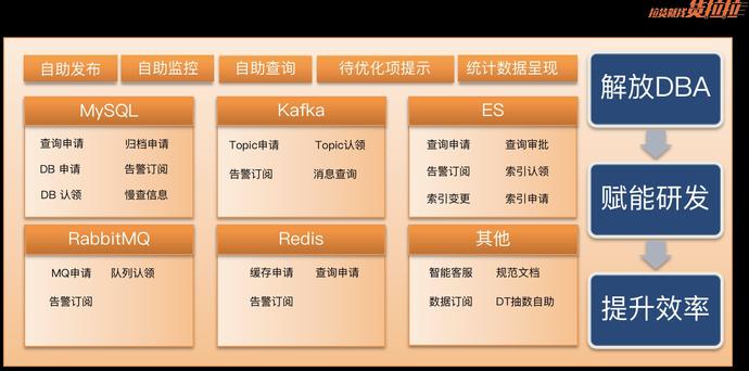 DBA完全靠人肉来满足研发诉求,研发跟DBA的交互完全靠吼,研发很多资源诉求、需求处理、问题排查都难以快速高效的满足。不过这只是当初的表象问题,更大的问题在于如果这些问题不能快速得到解决后续随着业务的快速发展技术团队的规模快速增长,作为基础技术支撑团队一定会出现更多更严重的问题,这些都是可以预想到的毕竟经历过类似的快速成长的公司基本上会有相应的心理预判。
