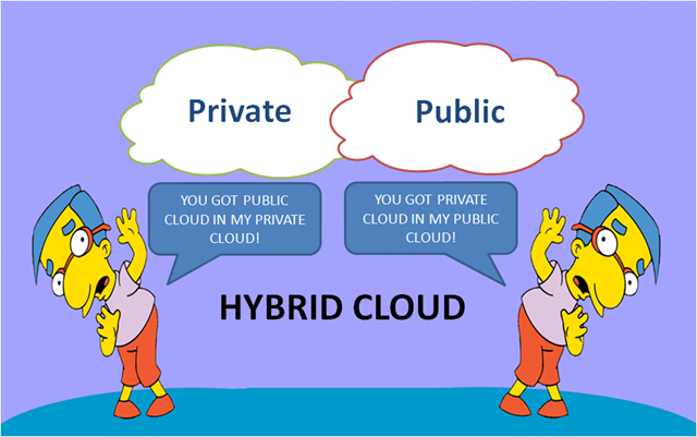 传统上,人们认为私有云是建立在企业内部数据中心和自有硬件的基础上的。但是硬件厂商加入云计算服务提供商的行列之后,私有云与公有云之间的界限变得越来越模糊。Rackspace推出的私有云服务,客户可以选择使用自有的数据中心和硬件,也可以选择租用Rackspace的数据中心和硬件。Oracle最近更进一步提出了“由Oracle拥有并管理”( Owned by Oracle, Managed by Oracle)的私有云服务。在这种新的业务模式下,客户所独享的私有云是仅仅是云服务提供商的公有云当中与其他客户相对隔离的一个资源池(you got private cloud in my public cloud)。而对于云服务提供商来说,用于提供公有云服务的基础构架可能仅仅是其自有基础构架(私有云)中的一个资源池,甚至是硬件厂商自有基础构架(私有云)中的一个资源池(you got public cloud in my private cloud)。