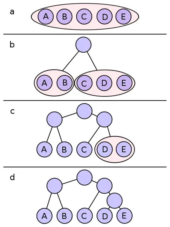 霍夫曼并不知道,就连大名鼎鼎的香农也在这个问题上苦苦挣扎。他研究了几个月并计划了多种方法,都没有用。就在他要放弃,把笔记扔到垃圾桶的那一刻,一个美妙而优雅的算法划过了他的脑海:按照字符出现的频率,从下往上构建二叉树,这就是著名的霍夫曼算法。