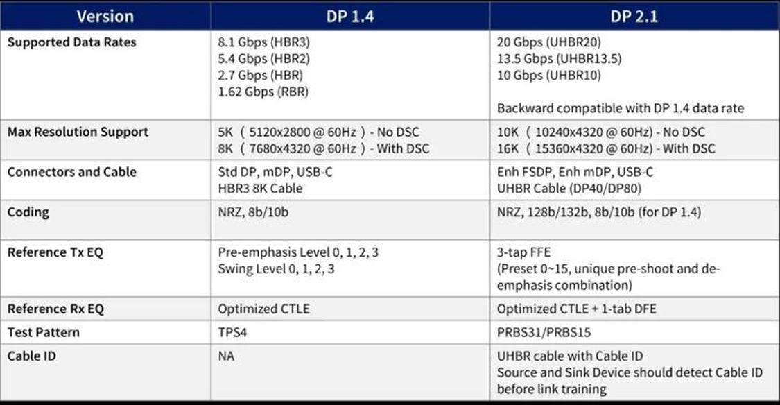 1.超高比特率(UHBR)传输模式:DP 2.1引入了三种新的传输模式,包括UHBR 10、UHBR 13.5和UHBR 20,最大带宽可达80Gbps。