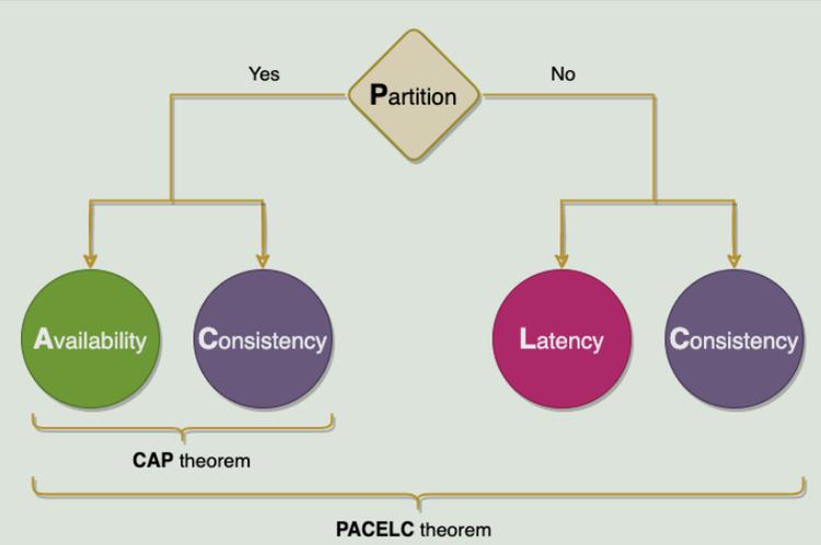 如果有一个分区('P'),分布式系统可以在可用性和一致性(即'A'和'C')之间进行权衡。否则('E'),当系统在没有分区的情况下正常运行时,系统可以在延迟('L')和一致性('C')之间进行权衡。