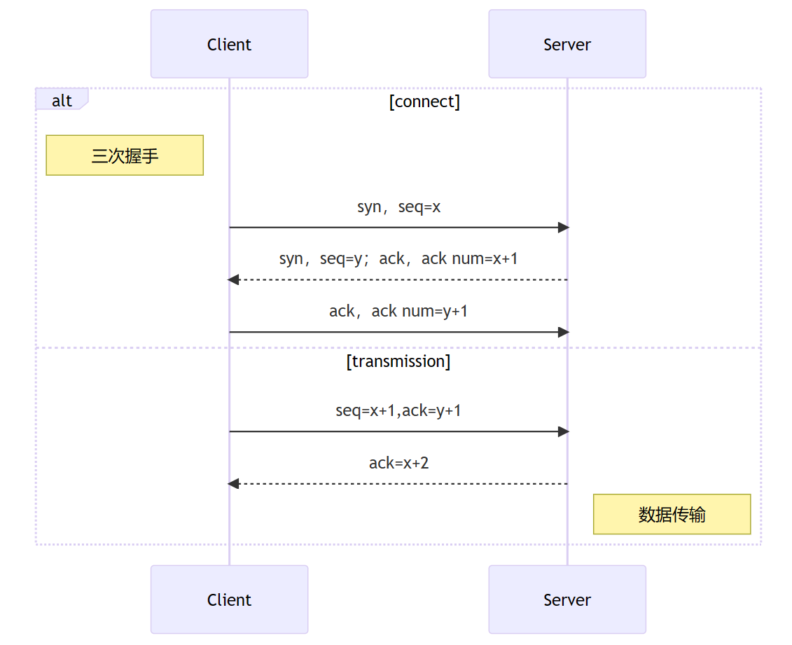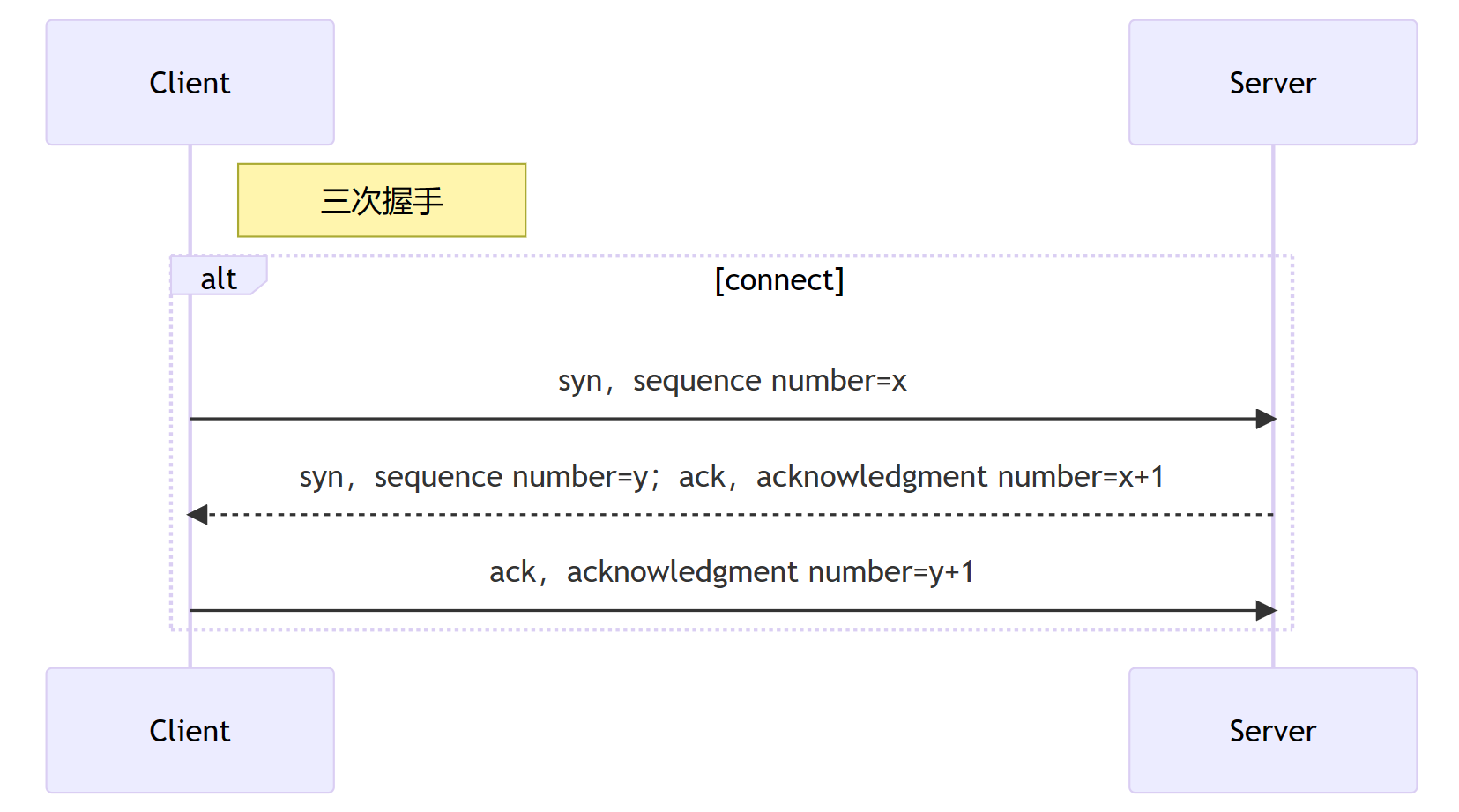 (1)三次握手是 由客户端发起 SYN,服务端收到 SYN 后发送 SYN 和 ACK,客户端回复 ACK;完成连接的建立。