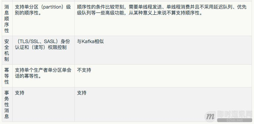 Kafka:支持。设置生产者的max.in.flight.requests.per.connection为1,可以保证消息是按照发送顺序写入服务器的,即使发生了重试。Kafka保证同一个分区里的消息是有序的,但是这种有序分两种情况: