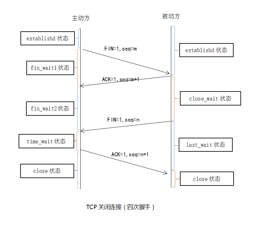 但未必被动方所有的数据都完整的发送给了主动方,所以被动方不会马上关闭SOCKET,它可能还需要发送一些数据给主动方后,再发送FIN报文给主动方,告诉主动方同意关闭连接,所以这里的ACK报文和FIN报文多数情况下都是分开发送的。