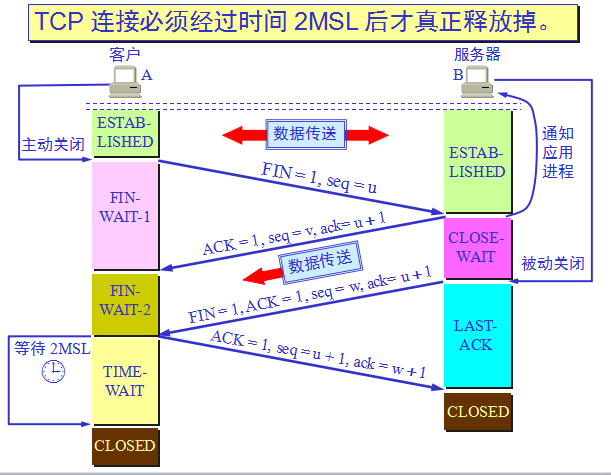 4.最后是断开连接阶段,数据传输完毕要终止连接。涉及到最后一个阶段要四次挥手来保证双方都断开连接。